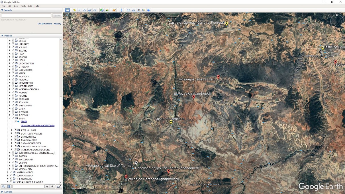 If we upload the SITES OF THE WORLD - The Earth file to Google Earth, let's see what happens: